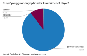 Bu yaptırımların türlerine baktığımız zaman yaptırımların yaklaşık %90’ının bireylere yönelik olduğunu görüyoruz. Kalan yaptırımlar ise işletmeleri hedef alıyor. Saldırı öncesinde dünyada yaptırımlara maruz kalan ülkeler arasında İran’dan sonra 2. sırada bulunan Rusya, işgal sonrası uygulanan yaptırımlar ile bugün dünyada en çok yaptırıma maruz kalan ülke konumunda. Yakın gelecekte bu yaptırımların daha da artması bekleniyor.
